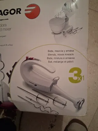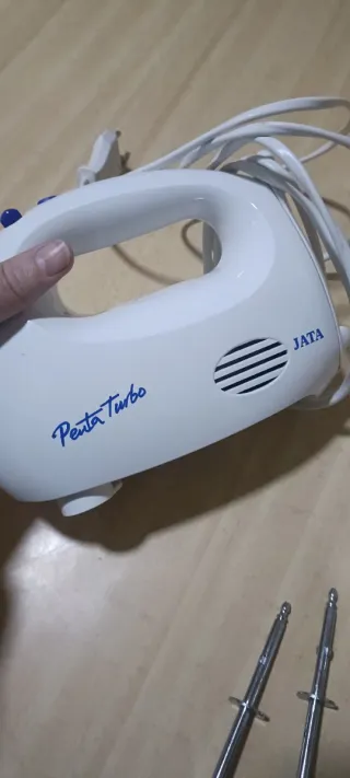 Batidora y amasadora Jata Penta Turbo en color blanco. Incluye accesorios. - Batidora de mano. - Accesorios amasadores. - Accesorios mezcladores - Vaso medidor. - FALTA BATIDOR. - Embalaje original.
