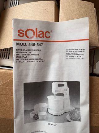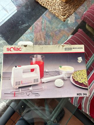 Batidora mezcladora Solac, modelo 546. Ideal para preparar diversas recetas en la cocina. - Incluye batidora de mano, varillas y accesorio para batir. - Diseño compacto y funcional. Nueva sin estrenar , solo desgaste del tiempo de la caja
