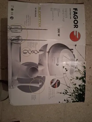 Batidora de mano Fagor Supermix SP-350 PLUS. - Potencia de 300 W. - Incluye varillas mezcladoras y amasadoras de acero inoxidable. - 5 velocidades más función turbo. - Sin estrenar
