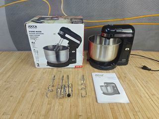 JOCCA - Batidora amasadora respostería 350W con autorrotacion por friccion, 5 velocidades, bowl de acero inoxidable de 3'5L, Amasa, Bate, Emulsiona, Varillas y mezclador de cromos (negro) COMO NUEVO Lo encendieron una vez para comprobarlo. Incluye todos los accesorios que se ven en las fotos. La compra es posible en persona en la ciudad de Denia o con envío en esta aplicación. Para envíos fuera de España, se debe consultar en privado. El precio en Amazon 60€ MÁS ARTÍCULOS EN MI PERFIL 7799 Cecotec Batidora Amasadora Cecomixer Easy