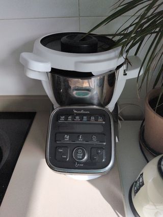 Robot de cocina premium en perfecto estado. Cocina saludable: bol de acero inoxidable de alta calidad y accesorios 100% libres de BPA. Nada de plásticos en contacto con el calor. Capacidad XL: Bol de 4,5L (hasta 10 raciones). Temperatura: 30°C a 150°C (ideal para dorar). 12 programas: Salsas, sopas, cocción lenta, vapor, masas y postres. Incluye estuche de accesorios: Cuchilla picadora, batidora, mezcladora, amasadora y cesta de vapor.