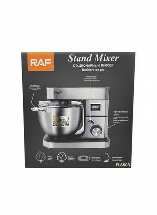 Batidora amasadora profesional RAF con gran capacidad de 8 litros, ideal para preparar pan, pizza, pasteles y todo tipo de masas. ✅Características principales ♦️ - Potente motor de 1000W para mezclar y amasar sin esfuerzo. ♦️ Varias velocidades ajustables según la preparación. ♦️ Incluye accesorios: gancho para amasar, varillas para batir y mezclador. ♦️ Tapa antisalpicaduras transparente. ♦️ Diseño moderno y elegante. ♦️ Base antideslizante para mayor estabilidad. ♦️ Fácil de usar y limpiar.
