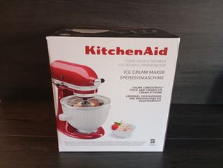 Fabrica helado cremoso y consistente en casa. Esta heladora KitchenAid es un accesorio para batidora de pie. - Fabrica helados cremosos y consistentes. - Accesorio para batidora KitchenAid - Incluye recipiente para helado.