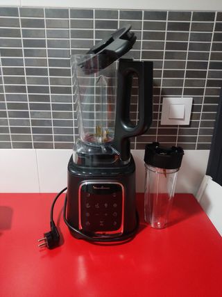 Batidora de vaso - Moulinex InfinyMix+ LM91HD, 1600 W, 2.6 L, 6 Cuchillas, 10 velocidades, Tecnología Powelix, 5 Programas, Vaso Tritan, Titanio ESTADO: Como nueva, se vende por tener una nueva. Sin caja. PRECIO TIENDA:199€ Ideal para procesar cualquier tipo de comida: cremas, purés, smoothies, salsas, hacer helados, picar hielo...