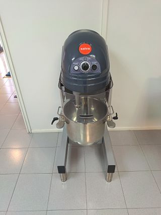 Batidora amasadora profesional de la marca Salva. Ideal para negocios de hostelería o panadería. - Diseño robusto y duradero. - Bol de acero inoxidable. - Protección de seguridad en la cuba. Incluye: - 2 bol - 2 palas - 2 globos - 2 ganchos