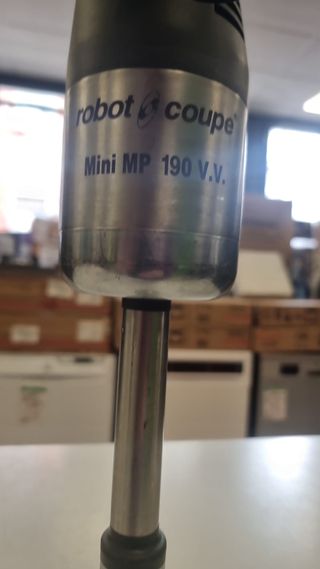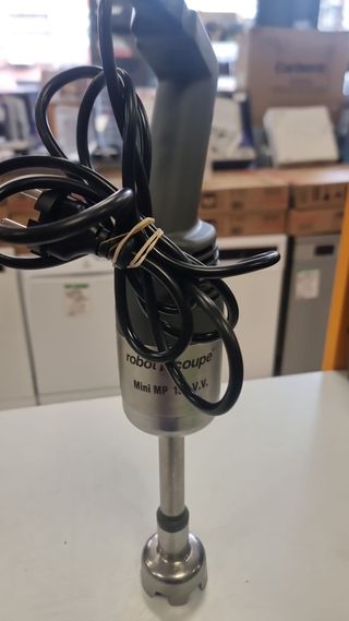 Batidora industrial Robot Coupe Mini MP 190 VV. Ideal para hostelería y cocinas profesionales. Modelo: Mini MP 190 VV Marca: Robot CoupeTipo: Batidora de Inmersión Industrial. Producto con garantía. Hacemos envíos a toda España (salvo Canarias, Ceuta y Melilla). Tienda en C/Sambara 101, Madrid. Teléfono 912600555. Síguenos en Facebook e Instagram tutiendadesegundamano. Visita nuestra web tutiendadesegundamano.