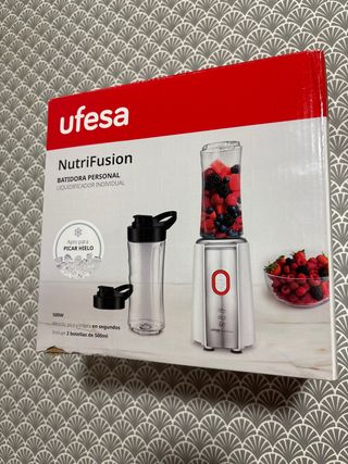 Batidora personal Ufesa NutriFusion, SIN ESTRENAR! Ideal para preparar batidos y smoothies. - Potencia de 500W. - Apta para picar hielo. - Incluye 2 botellas de 500ml.