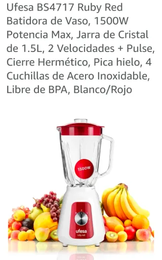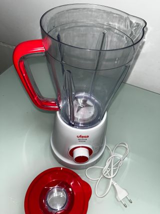 Batidora Ufesa Ruby Red en perfecto estado, solo usada una vez. - 1500w - Diseño moderno en blanco y rojo. - Jarra de cristal. - Controles de velocidad.