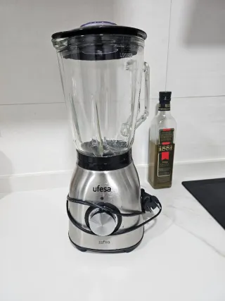 Batidora Ufesa Zafiro en color plateado. Ideal para preparar batidos y smoothies. - Potencia de 1000W. - Capacidad de 1,5L. - Cuchillas de acero inoxidable. Estamos en C.a.s.a.n.o.v.a.3 0.8.0.1.1 Barcelona. de 10-21hr de lunes a sábado. WhatsApp 6.2.7.0.0.6.2.5.9. Garantía de 3 meses