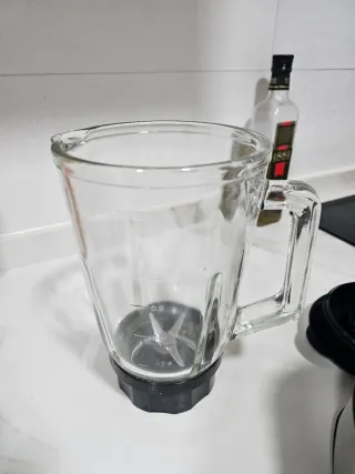 Vaso de repuesto para batidora Ufesa. - Material: Vidrio resistente. - Capacidad: Marcada en litros y onzas. - Diseño: Con asa para un fácil agarre.
