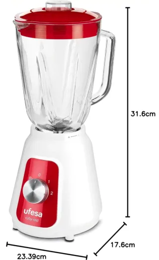 Batidora de vaso Ufesa Ruby Red con jarra de cristal. - Color: Rojo. - Capacidad: 1.5L. - Velocidades: 2 + Pulsar.