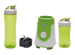 Batidora personal Ufesa en color verde y blanco. Incluye dos vasos para llevar tus batidos. - Base del motor con botón 'pulse'. - Dos vasos portátiles con tapa. - Cuchillas desmontables.