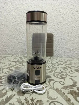 Batidora personal Ufesa Onyx UP!. - Diseño moderno y compacto. - Ideal para preparar batidos y smoothies individuales. - Recargable vía USB.