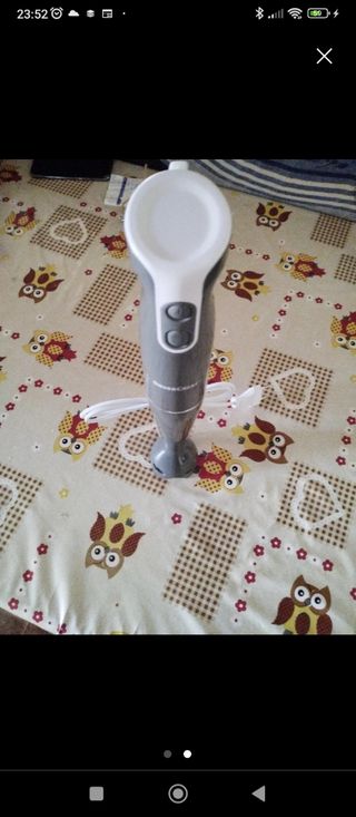 Batidora de mano en buen estado. Es de color gris y blanco. Desmontable,con dos velocidades. - Funciona con cable. - Diseño compacto y ligero. - Fácil de usar.