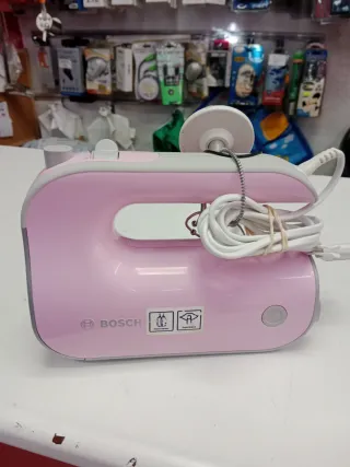 Batidora de varillas de la marca Bosch en color rosa. Un electrodoméstico práctico para tu cocina. - Diseño compacto y ligero. - Incluye varillas. - Botón de encendido/apagado.