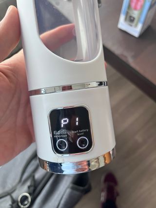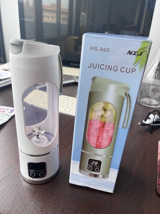 Batidora portátil tipo vaso, modelo Juicing Cup HS-860. Ideal para preparar batidos y zumos sobre la marcha. - Diseño moderno y compacto. - Incluye tapa con asa para transporte. - Base con botones de control.