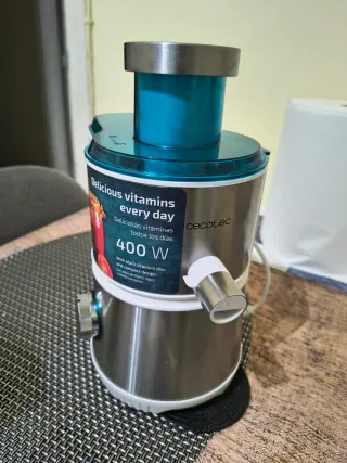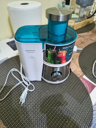 Batidora de zumo Cecotec Juice&Fresh en color blanco y azul. - Diseño moderno y compacto. - Incluye accesorio para zumos. - Potencia de 400W.