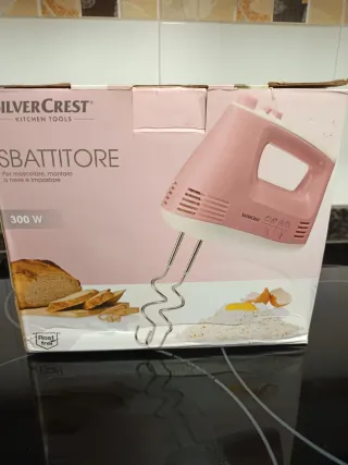 Batidora amasadora SilverCrest en color rosa. Ideal para mezclar, montar y amasar. - Potencia de 300W. - Diseño compacto y ergonómico. - Incluye varillas amasadoras de acero inoxidable. - Fácil de limpiar.