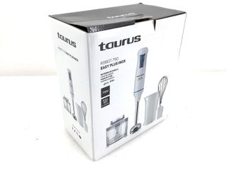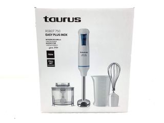 Batidora de mano Taurus Robot 600 con accesorios. - Incluye vaso medidor. - Incluye picador. - Diseño en blanco y azul. Un par de usos, nos la regalaron y ya teníamos una