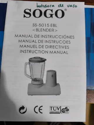 Batidora multifunción Solac, modelo B408. - Incluye manual de instrucciones en varios idiomas.