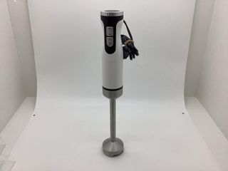 Batidora nueva sin usar, de mano Masterpro con motor de 1000W y varios accesorios para diferentes usos. - Cuerpo principal de acero inoxidable y plástico. - Incluye vaso medidor. - Varillas para montar nata o claras. - Mini picadora. - Cuchillas de acero inoxidable.
