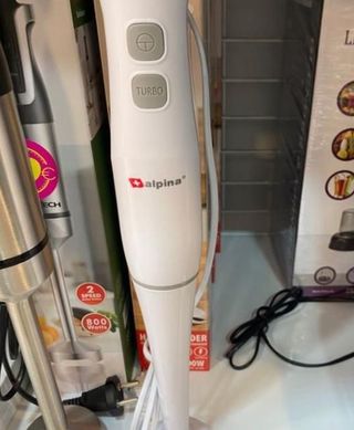 Batidora de mano Taurus Bapi Unic en color blanco y azul. Potencia de 1000W. - Incluye vaso medidor. - Diseño ergonómico.