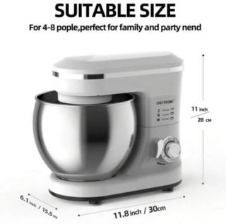 Este Mezclador Comercial cuenta con un tazón de acero inoxidable de 20Qt y un potente motor de 1100W, lo que lo hace perfecto para panaderías y pizzerías. Incluye un molinillo de carne con un rendimiento máximo de 265 lbs/h y viene con un kit de 4 accesorios: gancho para masa, batidor y mezclador. El mezclador ofrece 3 velocidades ajustables (108/199/382 RPM) para una mezcla versátil. Construido de acero al carbono duradero, pesa 167.6 lbs (76 kg). Las dimensiones del tazón son 12.5 x 12.5 x 11.4 pulgadas (31.8 x 31.8 x 29 cm), mientras que las dimensiones generales son 21.1 x 16.7 x 30.7 pulgadas (53.5 x 42.5 x 78 cm). Fácil de usar y limpiar, garantiza seguridad con un guardia de seguridad.