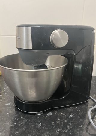 Batidora amasadora KÜKEN de color negro y bol de acero inoxidable. - Potencia de 600W. - Capacidad del bol de 4.2 litros. - Incluye 3 cabezales intercambiables. - 6 velocidades ajustables. - Protección antisalpicaduras.
