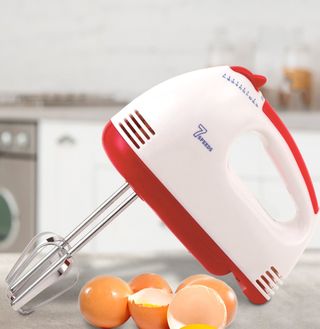 Hacer tartas, cremas, merengues y hasta pan en casa es posible sólo si se tienen los aparatos adecuados. Para poder preparar los mejores postres presentamos esta compacta batidora eléctrica de mano. Incluye varillas intercambiables: batidores para mezclar y ganchos para amasar. Características: - Varias velocidades. - 120V-220V 50-60Hz 150W. Modelo: Ref. 13591 / RL 200 HM / KC-041 / BN3412. , (Unidades por caja: 12).
