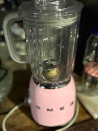 Batidora de sobremesa Smeg en color rosa. Diseño retro y elegante. - Cuerpo de aluminio pulido. - Tapa con orificio de llenado. - Cuchillas de acero inoxidable.