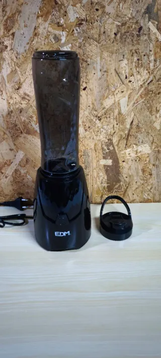 Batidora personal para smoothies y batidos. NO NEGOCIABLE - Color negro brillante. - Jarra de plástico resistente. - Tapa con asa. - Marca EDM.