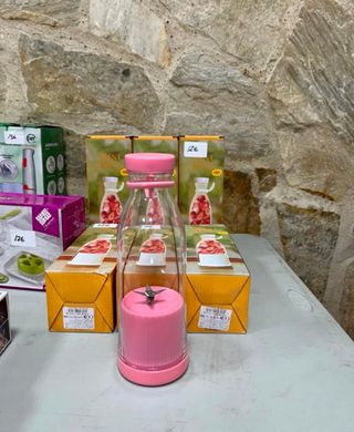 Batidora portátil de tamaño compacto, ideal para preparar batidos y zumos sobre la marcha. Su diseño es moderno y funcional. - Color rosa. - Botella transparente. - Cuchillas de acero inoxidable.