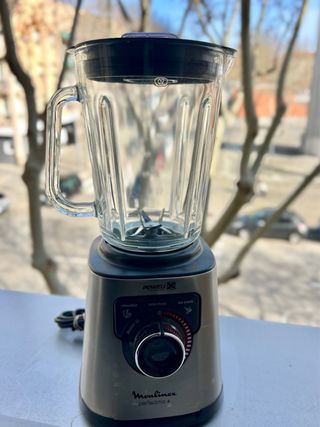 Batidora de vaso Moulinex Perfect Mix+ con jarra de cristal. - Jarra de cristal. - Cuchillas de acero inoxidable. - Panel de control con selector giratorio. - Funciones: Smoothie, Auto Clean, Ice Crush y Pulse.