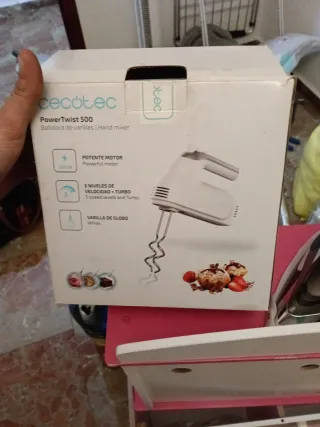 Batidora de varillas Cecotec PowerTwist 500. - Potente motor de 500W. - 5 niveles de velocidad y turbo. - Incluye varillas de globo para batir.