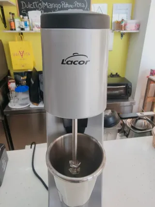 Batidora eléctrica de la marca Lacor, ideal para preparar batidos y otras bebidas. - Color plateado. - Vaso de acero inoxidable.