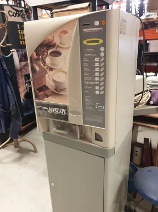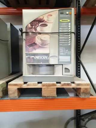 Máquina de café Nescafé Brio, ideal para preparar diversas bebidas. - Diseño con imágenes de café y molinillo. - Panel de selección de bebidas. - Marca: Nescafé. - Modelo: Brio.