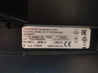Cafetera integrable de la marca Bosch, modelo CTL636ES1. Diseño moderno en acero inoxidable y cristal negro. Esta en muy buen estado ya que casi no se le ha dado uso,se vende por cambio a una de brazo. -Panel táctil. -Dimensiones (H×w×D) 449x558x356 mm. -Peso 19,7 kg. -Bomba de presión 19 Bar. -Capacidad deposito de agua 2,4L.( Extraible) -Capacidad depósito café grano 500gr. -Sistema de leche integrado con adaptador.( Capacidad de 0,50 L). - Longitud del cable de alimentación 170cm. -Aroma Doubleshot( café extra intenso por el doble proceso de molido y preparado y ajuste de grado de molido). -Ceramdrive( molinillo de café alta c