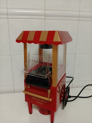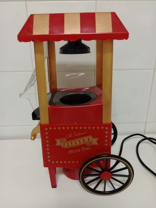 Maquina para hacer palomitas con aire caliente, sin aceite ni grasa. Quedan riquísimas en pocos minutos. Además tiene un diseño retro chulísimo que sirve de decoración. Usada muy poco. En perfecto estado, funciona perfectamente. Si necesitas más información pregunta sin compromiso. Gracias!