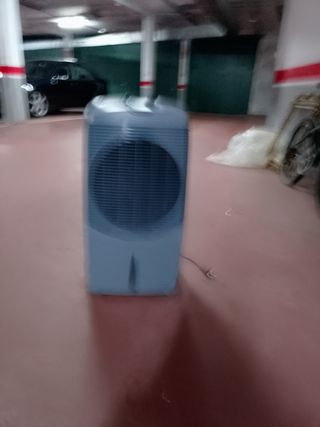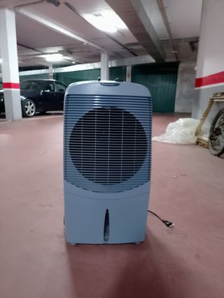 Máquina de aire frío que funciona con agua. - Diseño portátil con ruedas. - Depósito de agua visible. - Rejilla frontal de gran tamaño.