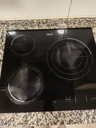 Vitrocerámica de la marca Zanussi. - Superficie de cristal negro. - Diseño moderno.