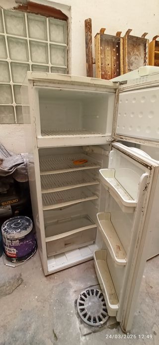 Nevera combi de la marca Indesit en color blanco. 140 X54 (611-75-85-91 llamar)Dispone de congelador en la parte superior. FUNCIONANDO - Diseño de dos puertas. - Acabado en blanco.
