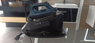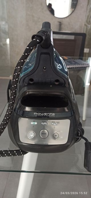 Plancha de vapor Rowenta con base y deposito extra de agua, 2 en 1 (611-75-85-91 Llamar) en material resistente, base de plancha en acero inoxidable - Tecnología Silence. - Diseño moderno en color negro y azul.