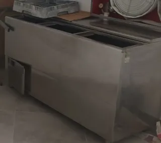 Freidora de acero inoxidable, ideal para negocios de hostelería. - Construcción robusta en acero inoxidable. - Diseño compacto y funcional.