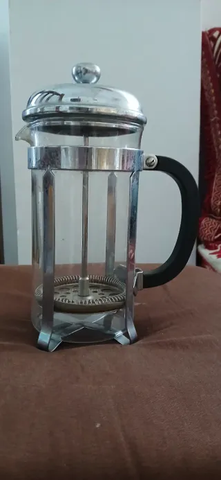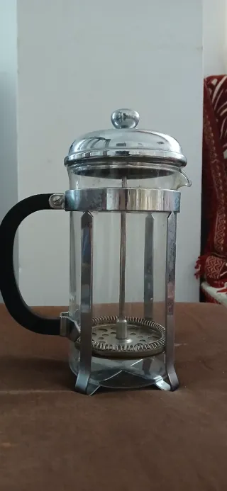 Cafetera de émbolo de cristal y metal
