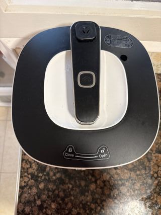 Robot aspirador de color blanco, ideal para mantener tus suelos limpios. No funciona al 100%. También se puede intercambiar piezas - Diseño circular. - Base de carga incluida. - Adaptador de corriente.