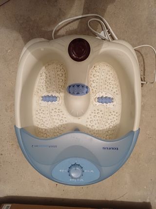Disfruta de un relajante masaje de pies en casa con este aparato. - Diseño en color blanco y azul. - Incorpora rodillos para masajear. - Marca Taurus.