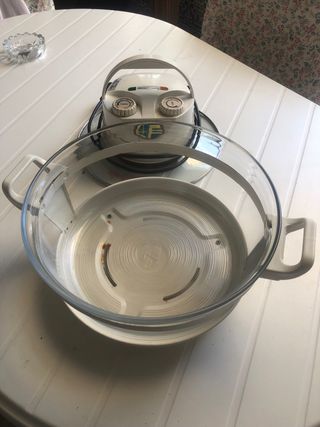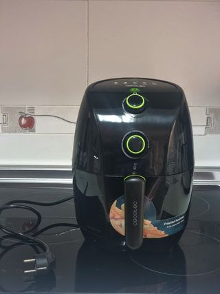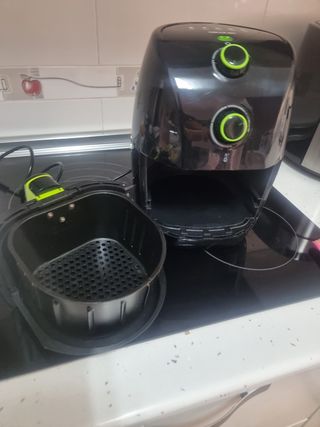 Freidora de aire cecotec de 1,5 L .Como nueva muy poco uso funciona perfectamente .Con su libro de instrucciones y recetas 900 w temperatura máxima 200°.