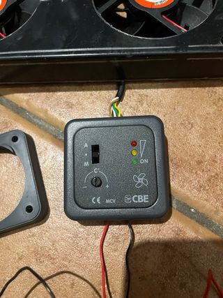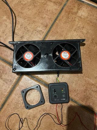 Conjunto de dos ventiladores para frigorífico trivalente CBE. - Incluye control de velocidad. - Marco de montaje de plástico. - Quit completo