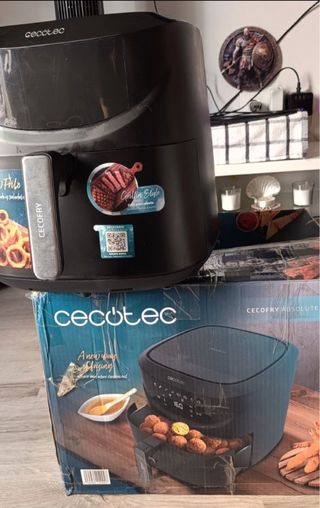 Freidora de aire Cecofry Absolute con gran capacidad. - Capacidad de 7,6 litros. Vendi el cajón suelto, queda lo que es la maquina por si interesa para piezas. Tiene una pequeña rotura, arreglada, en un lateral. Solo funciona la temperatura y el tiempo, así va perfecto. Yo la compre para ver si me gustaba el tipo de comida sin aceite en freidora de aire. Me encantó. Rica, no mancha y puedes ponerla y dejarla sin estar pendiente. No se generan olores. Ahora que veo que me encaja, me compre una nueva.