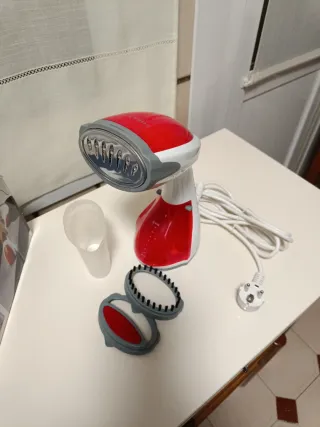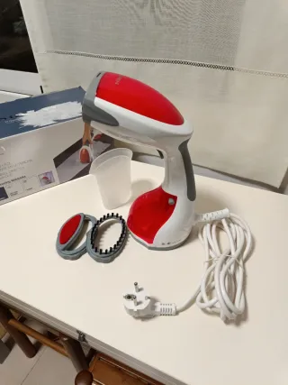 Plancha vertical de mano Sokany, ideal para alisar prendas de ropa de forma rápida y sencilla. Ideal para planchar cortinas o prendas colgadas. Usada sólo dos veces. Con su caja original. Características indicadas en la tercera foto. - Color rojo y blanco. - Incluye accesorios. - Cable de alimentación de 2,5 m.